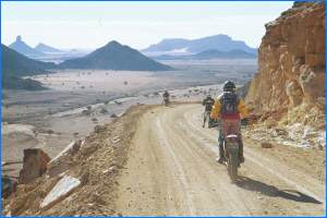 Bereits zum dritten Mal (1993/94 3 Wochen Libyen, 1997/98 3 Wochen Tunesien) waren wir mit «Die Wüstenfahrer GmbH» unterwegs: Die Logistik, die professionelle Begleitung, die gute Verpflegung und nicht zuletzt die ethischen Grundsätze des Unternehmens begeisterten uns immer wieder. Diesmal war erstmals der Besitzer und Organisator Thomas Trossmann mit von Partie, war doch für diese Reise zu Ehren des Jahrtausendwende eine ganz besonders attraktive Reise geplant. Er war Chefredaktor des Magazins «Motorrad Abenteuer» und dort wurde unsere Reise auch veröffentlicht. |