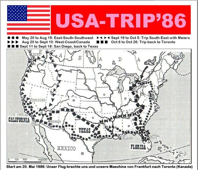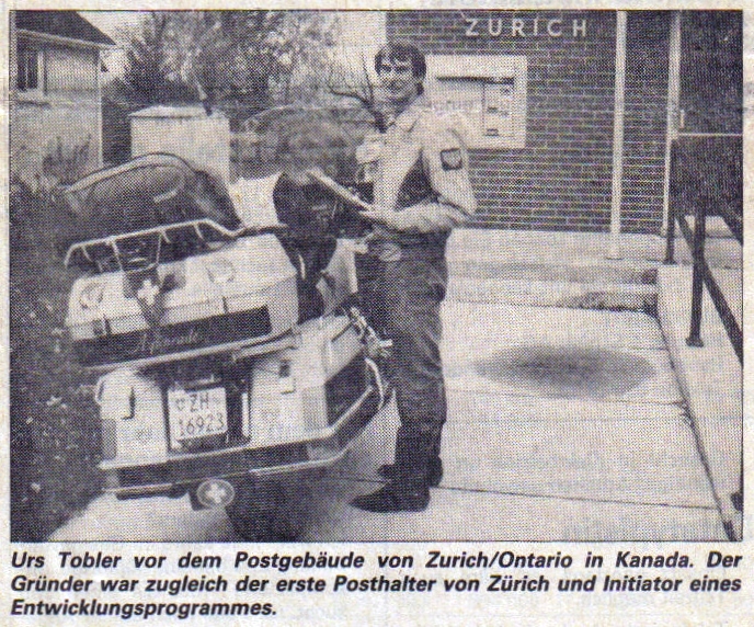 1986 war es soweit: Meine damalige Freundin und spätere Frau Luzia und ich brachen am 20.Mai auf in die Vereinigten Staaten. Unsere Maschine flog im selben Flugzeug im Frachtraum mit. Der Flug von Frankfurt aus brachte uns nach Toronto in Kanada. Noch gleichen Tags fuhren wir über die Grenze zu den Niagara Falls. Danach ging es in den Süden nach Florida, gen Westen nach Kalifornien - in Vancouver/Kanada war gerade die Weltausstellung «EXPO'86»und anschliessend ging es langsam wieder zurück in den Süden, nach Osten und von dort wieder in den Norden. Kurz vor unserem Rückflug am 26. Oktober 1986 besuchten wir «Zurich», ein kanadisches Nest im Bundesstaat Ontario: Darüber kam ein Bericht im GLATTALER, der Dübendorfer Dorf- eh! Stadtzeitung. Mehr dazu findest Du hier [2'080 KB]