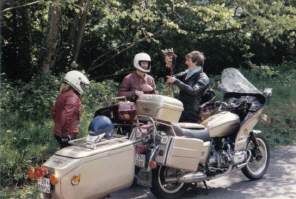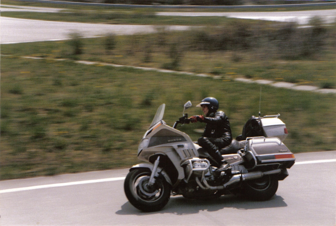 In spring 1988 I got a phone call from the german motorcycle magazine «MOTORRAD», if I would have time to drive the first test-ride of the new 6-cylinder GL1500: Wow, what an honour! The raison they asked ne was a 12 page-report of the GoldWing-history in 1987, asking them, if they are interested in the story of our 5 month-trip. The trip itself was 1 1/2 page of the whole article. The test-ride took as to Belgium to take some pictures and Luzia like me rode probably 600 kms in 2 days to get in contact with the new fascinating six-flat. |
