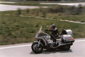 In automn 1990 I had a speach about the swiss motorcycle-licening system of motorcycle riders. We picked up two GL1500 in Phoenix and rode down the 5'500 kms to Orlando in a few days. We visited on our trip the same people we met on our 5-month-trip of a life-time in 1986. After the conference we took the two GoldWings back to Germany, the owner was our friend Werner Kiefer of «BigBikeTours», specialized in these days for buying Wings on the US and imatriculating them in Germany: It was a part of his business. |