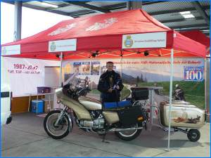 30.Sept. 2007/ 15.30 Uhr: Da ich wusste, dass ich im Moment auf der 1000er GoldWing um die 194'300 Kilometer auf dem Tacho habe, wurde ich beim Tanken «gwundrig»! So fuhr ich direkt zur Garage, wo meine erste GoldWing ein ruhiges Dasein fristet. Sie wird nur noch selten bewegt, insbesondere dann, wenn ich auf meinen Anhänger angewiesen bin! Mehr dazu auf das Bild rechts «klick»-en! |