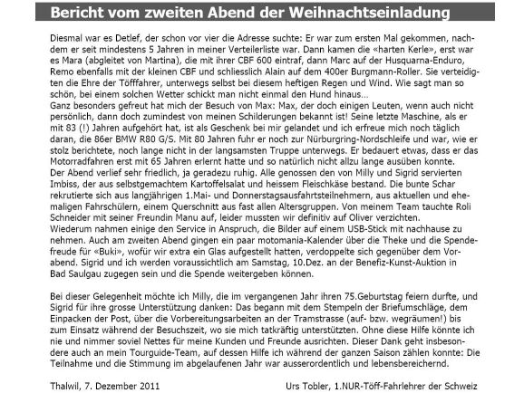 Einen besonderen Wert lege ich immer auf die Aufmachung des Briefes: Neben einem schönen Design-Blatt (von Künzli-Papier) mit einem tollen Eindruck (von Blum-Offsetdruck) war auch der Inhalt «nicht ohne»: Jedem Brief lag ein BuKi-Adventskalender bei, dem kleinsten Adventskalender der Welt! Damit unterstütze ich die Privat-Initiative einer Jugendfreundin von Sigrid, die ein Kinderhaus [2'707 KB]