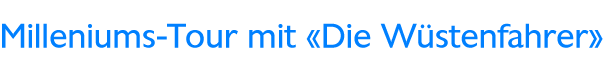 Bereits zum dritten Mal (1993/94 3 Wochen Libyen, 1997/98 3 Wochen Tunesien) waren wir mit «Die Wüstenfahrer GmbH» unterwegs: Die Logistik, die professionelle Begleitung, die gute Verpflegung und nicht zuletzt die ethischen Grundsätze des Unternehmens begeisterten uns immer wieder. Diesmal war erstmals der Besitzer und Organisator Thomas Trossmann mit von Partie, war doch für diese Reise zu Ehren des Jahrtausendwende eine ganz besonders attraktive Reise geplant. Er war Chefredaktor des Magazins «Motorrad Abenteuer» und dort wurde unsere Reise auch veröffentlicht. |