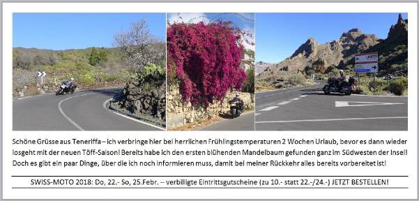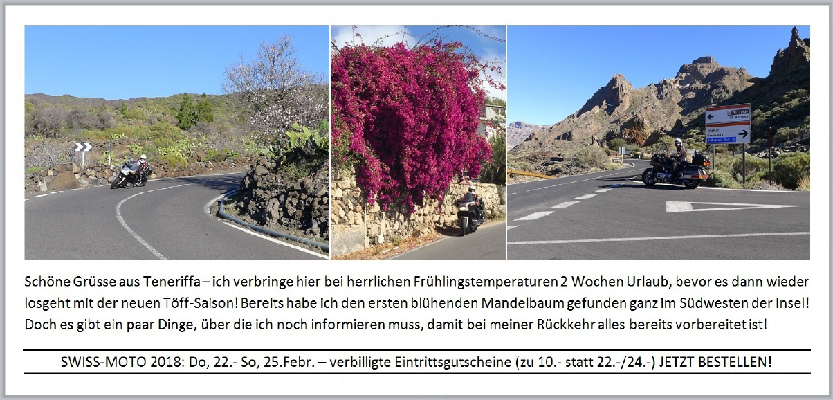 Ich hatte mir meine Rückkehr allerdings anders vorgestellt, lies den Begleitbrief zur «SWISS-MOTO-Post» vom 9.Febr. 2018 hier [7'969 KB]