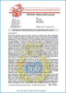 In diesen Tagen ging ein Rundbrief weg mit Dokumentation an verschiedene VSR-Veranstalter, Motorrad-Importeure und grössere Töff-Händler. Sie wurden ersucht, ebenfalls etwas zur Preisverteilung am 1.Mai-Rallye beizutragen. Nun hoffe ich auf möglichst viele Rückmeldungen.