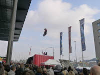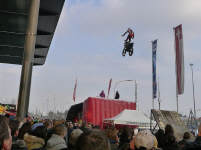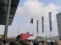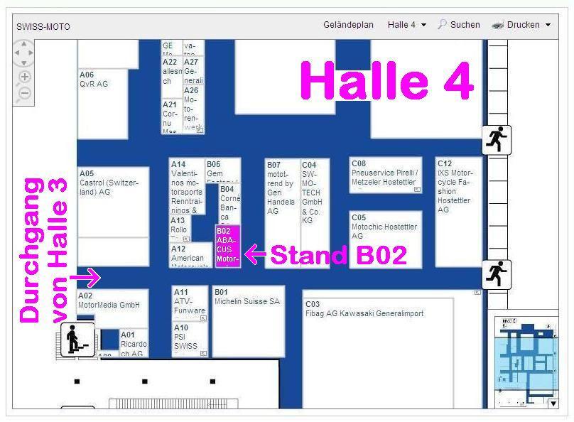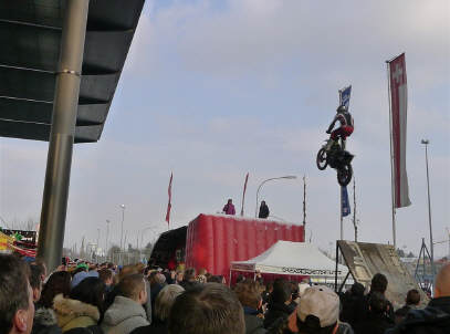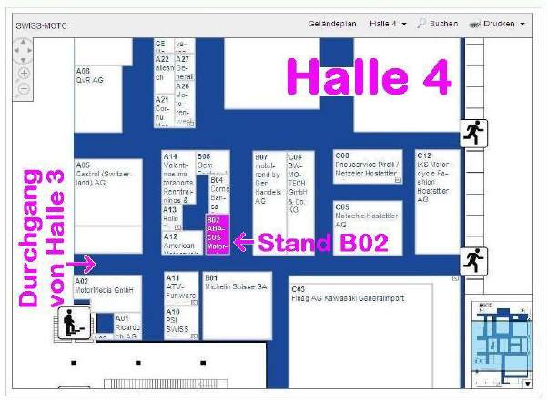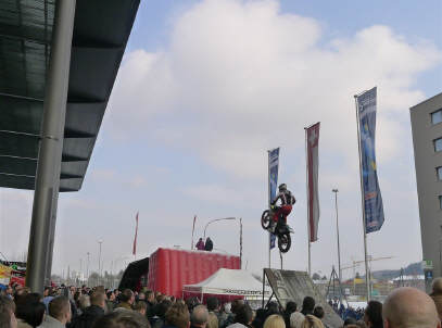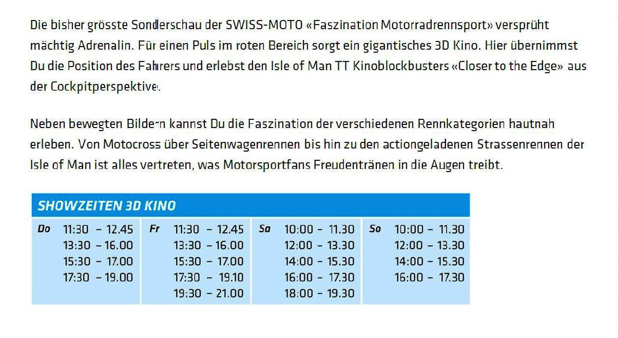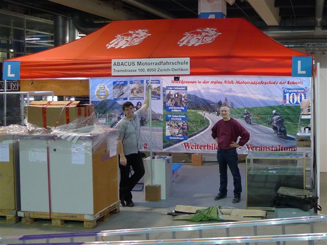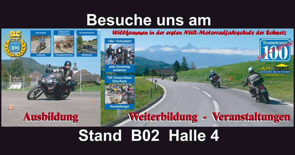 Ein Drittel des Besucherrückgangs von der letztjährigen zur bisher erfolgreichsten SWISS-MOTO im Jahr 2011 konnte in diesem Jahr wettgemacht werden. Mit 66'597 registrierten Besuchern rückt sie auf den 2.Platz in der 10-jährigen Geschichte der SWISS-MOTO. Besonders am frühen Samstagnachmittag stauten sich die Besucher in den Gängen und vor den Kassen bildeten sich riesige Warteschlangen. Das Konzept der Event-Ausstellung, in welcher dem Besucher sehr viel Unterhaltung geboten wird, scheint beim Kunden anzukommen. So wünsche ich dem erfolgreichen Team um den initiativen Leiter Yves Vollenweider viel Erfolg auch im nächsten Jahr, in welchem ich pausieren werde: Sigrid und ich werden im nächsten Winter für 2 Monate in Australien Ferien verbringen und dann reichts weder zeitlich noch finanziell für eine SWISS-MOTO-Teilnahme. Klicke auf untenstehendes Bild und Du kannst Dich durch den Schlussbericht [95 KB]
