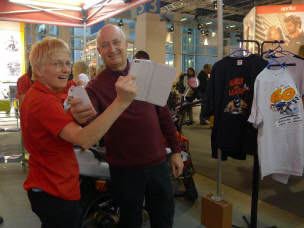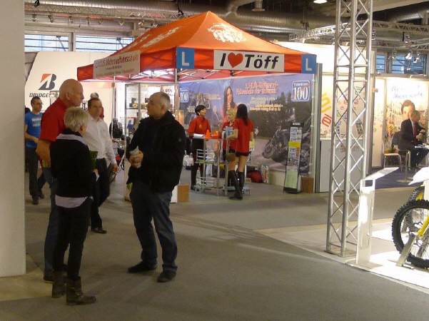 Nach der Pause von 2014, als Sigrid und ich in Fernost in den Ferien weilten, bekamen wir einen neuen Platz in der Halle 3 mit einer TOP-Platzierung: Alle Besucher, die die Rolltreppe aufwärts bestiegen, landeten direkt an unserem Stand. Das TÖFF-Magazin hatte das Seine dazu beigetragen mit einem Artikel über den Kult-Kleber «I love Töff», was zu einem hohen Erkennungswert beitrug.
