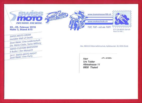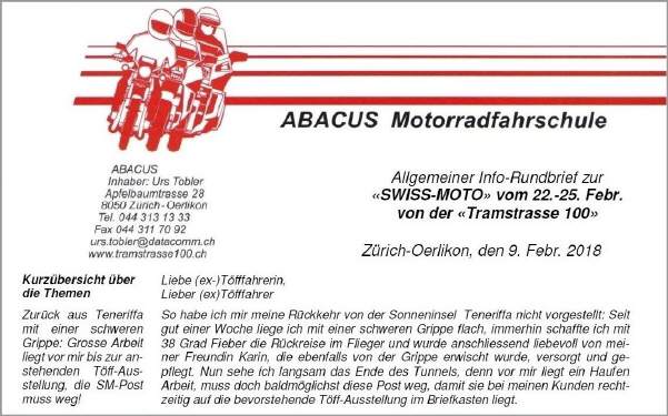 Ich hatte mir meine Rückkehr allerdings anders vorgestellt, lies den Begleitbrief zur «SWISS-MOTO-Post» vom 9.Febr. 2018 hier [7'969 KB]