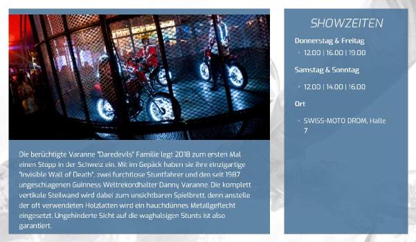 Wie in jedem Jahr werden Dir verschiedene Sonderausstellungen geboten: Yves Vollenweider, «Mr. Swiss-Moto» und sein Team, gelingt es jedes Jahr, ganz neue Aspekte des Zweiradmarktes, aktuell und in der Vergangenheit, zu einer interessanten Schau zusammenzustellen. Du solltest die SWISS-MOTO 2018 keinesfalls verpassen!