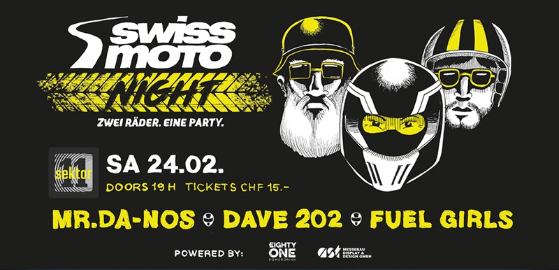 Am Samstag, 24. Februar 2018 stieg im Rahmen der Motorrad- und Tuning-Show SWISS-MOTO eine Party der ganz besonderen Art. Auf dem Programm stand die inoffizielle Eröffnung der Motorradsaison 2018 im Sektor 11. Die Live-Acts Mr. Da-Nos und Dave 202 liefern satte Bässe und die Fuel Girls aus England sorgen mit einer heissen Show für einen feurigen Saisonstart.