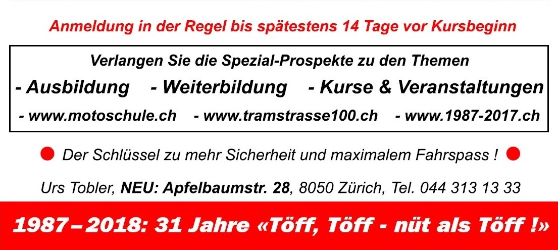 Grundschulungskurse auch im Winter? Wer bei solchen Wetterverhältnissen Motorrad oder Roller fährt, riskiert sein Leben: Klar, dass WIR bei solchen Strassen- und Witterungsverhältnissen keine Verkehrschulung machen können. Der erste Teil des Fahrzeugbeherrschungskurses findet nur auf dem Parkplatz statt. Dank der «logistischen Möglichkeiten» meiner Fahrschule ist es möglich, BEI JEDEM WETTER den ersten Teil zu absolvieren. Danach sind wir jedoch auf das Wetterglück - bzw. die Flexibilität der Kund(inn)en - angewiesen, den Unterricht so zu legen, dass wir «draussen» fahren können. Für MEHR INFOS auf das Bild «klicken»!