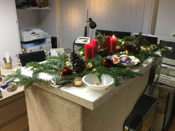 Aus Anlass meines «30 Jahres-Jubiläums» gab es eine ganz besondere «Weihnachtseinladung»:Wir luden unsere aktuellen Kunden, sowie ein paar ausgewählte Personen persönlich mit einem Brief ein-alle übrigen erhielten ein E-Mail.Im Schulgarten vis-à-vis mietete ich die Blockhütte, deren Vorraum wir zu einem Raclette-Stübli verwandelten - mehr dazuhier