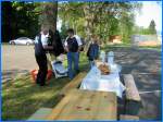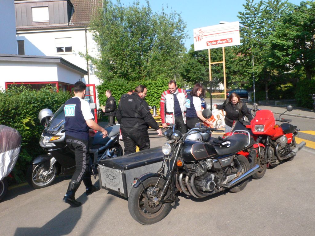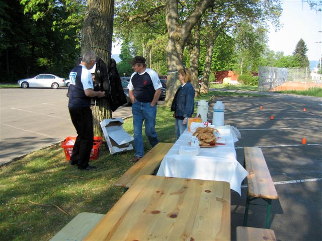 Morgen um halb acht Uhr: Die ersten Helfer treffen ein, die Tische werden aufgestellt und die Posten werden eingerichtet. Roli Schneider bringt direkt von der Stickerei Broga in Gähwil die fertiggestellten T-Shirts. Die letzten Helfer werden zu einzelnen Posten mit dem Material ausgesendet. An der Tramstrasse bekommen nur die Helfer Kaffee und Gipfeli. Alle übrigen müssen sich bis zum 2.Posten gedulden.