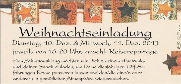 Die SWISS-MOTO'2014 findet - leider - ohne mich statt: Sigrid, meine Freundin und ich werden im Jan. und Febr. unterwegs sein im Fernen Osten. Wir kehren erst wieder Ende Februar zurück. Meine Kunden erhalten - trotzdem! - einen GRATIS-Gutschein zum Freieintritt, weitere Bons können für Fr. 12.- bezogen werden.